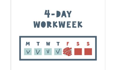 A iniciativa “4-Day Week Global” (quatro dias por semana) é conduzida em todo o mundo em parceria com a Reconnect Happiness at Work e segue o modelo 100-80-100, no qual o profissional recebe 100% do salário trabalhando 80% do tempo em troca de um compromisso de manter 100% de produtividade.